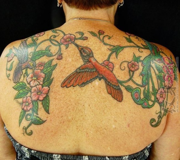 后肩唯美花藤英文图案图片_植物纹身图案大全_纹身图吧