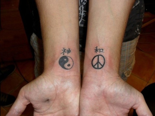 情侣手腕上黑色素描创意阴阳中国风纹身图案