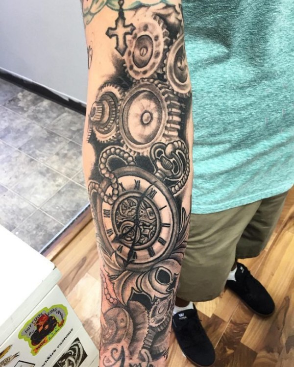 多款经典的黑灰素描点刺技巧创意钟表纹身图案
