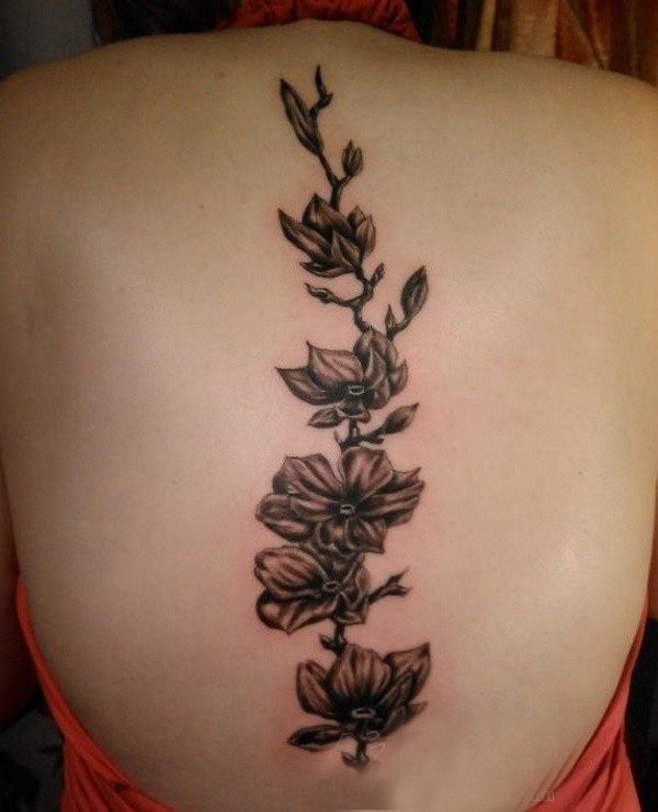 多款关于性感的后背上黑色抽象线条脊柱纹身图案