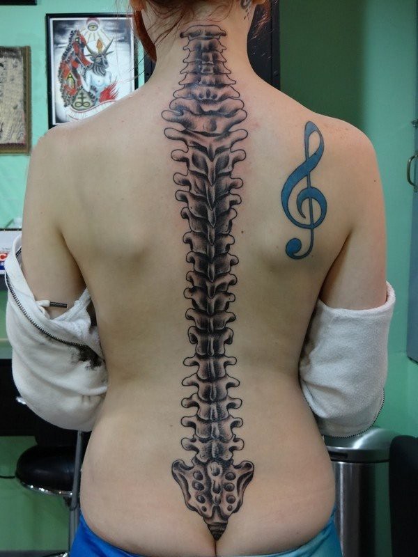 多款关于性感的后背上黑色抽象线条脊柱纹身图案