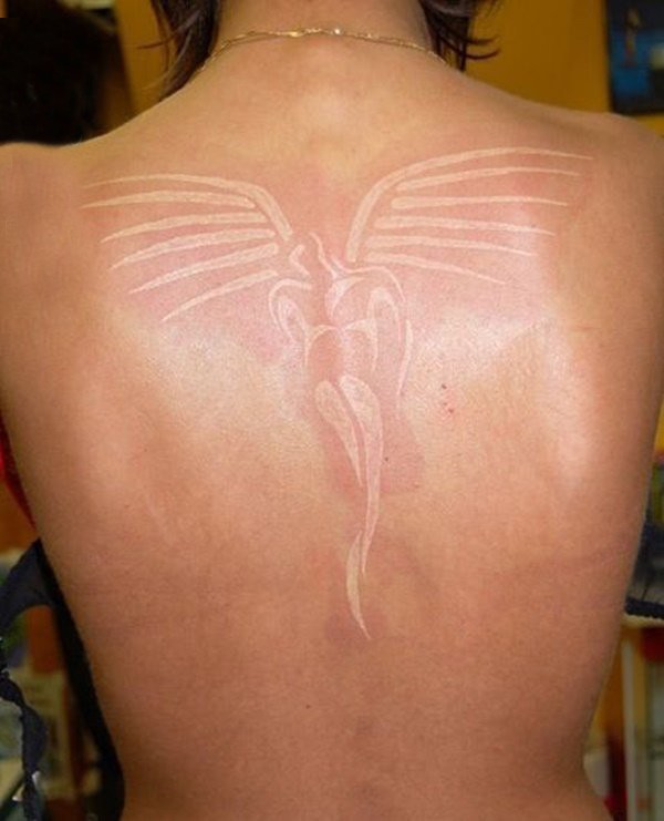 女生后腰纹身黑白灰风格抽象线条纹身图案