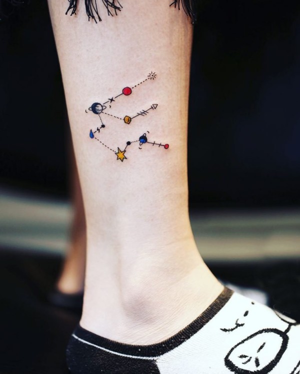 女生小腿上彩绘素描文艺小清新星象纹身图片