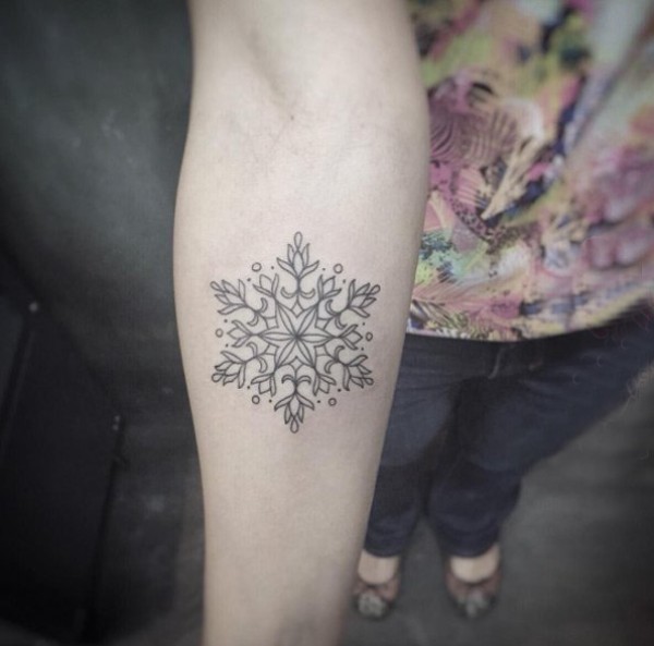 晶莹如玉的黑色简单线条唯美雪花纹身图案