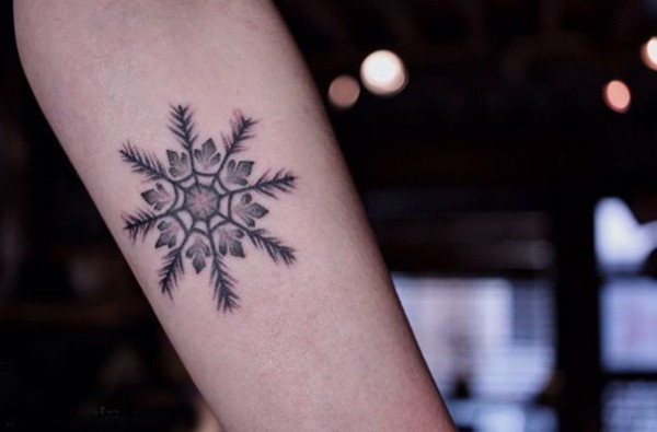 晶莹如玉的黑色简单线条唯美雪花纹身图案