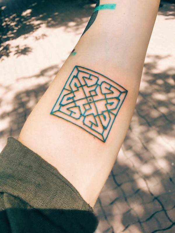女生手臂上黑色几何元素简单线条创意纹身图片