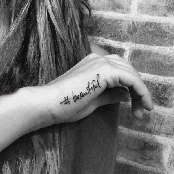 女生手部黑色线条文艺小清新花体英文纹身图片