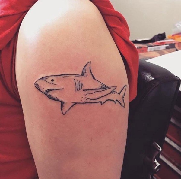 男生手臂上黑色简单线条小动物鲨鱼纹身图片