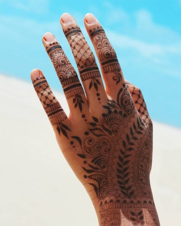 女生都喜爱的黑色线条文艺小清新唯美曼海蒂花纹纹身图案