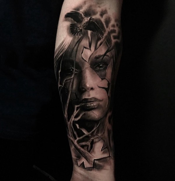 女性肩部肖像刺青_肖像纹身图案大全_纹身图吧