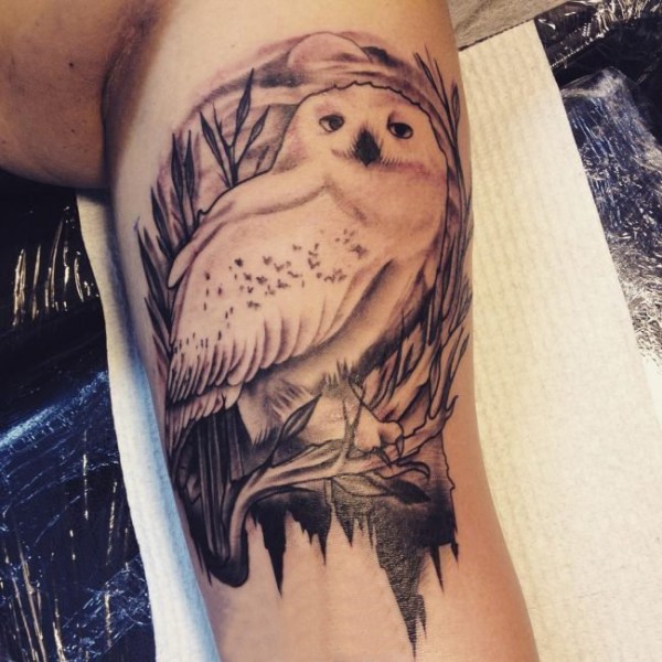 男生手臂上黑灰素描点刺技巧创意老鹰纹身图片