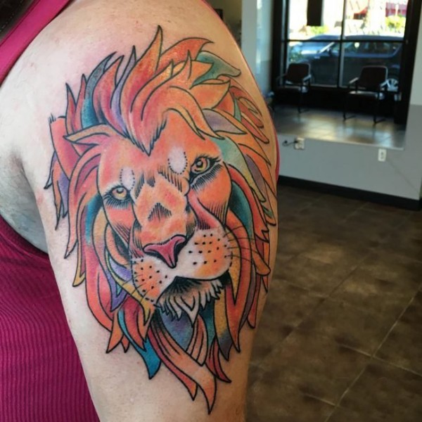 男生手臂上彩绘水彩素描创意霸气狮子纹身图案