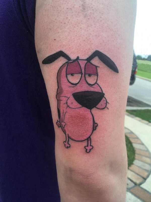 男生手臂上彩绘简单线条小动物狗纹身图片