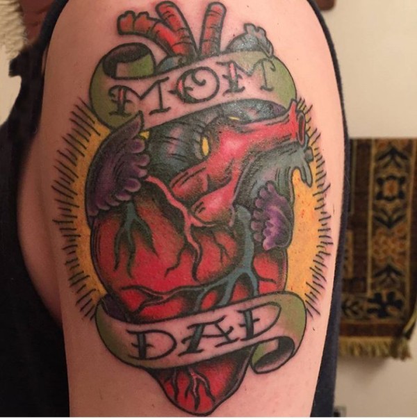 男生手臂上彩绘水彩素描创意心脏纹身图片