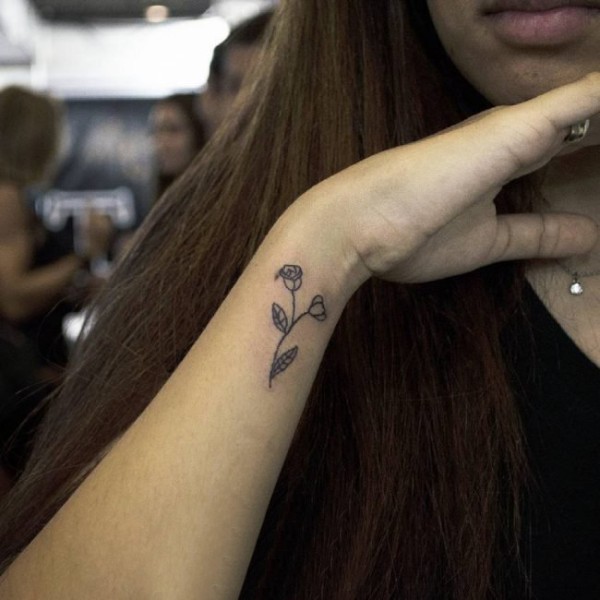 女生手腕上黑灰素描文艺小清新花朵纹身图案
