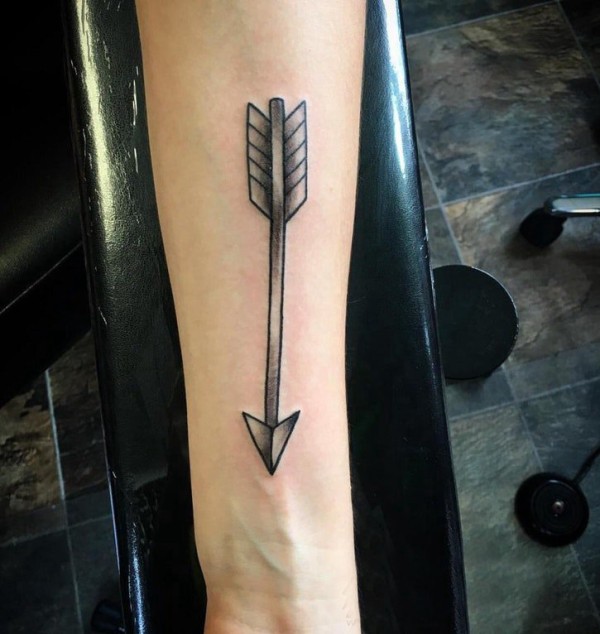 女生手臂上黑色几何元素简单线条箭纹身图片