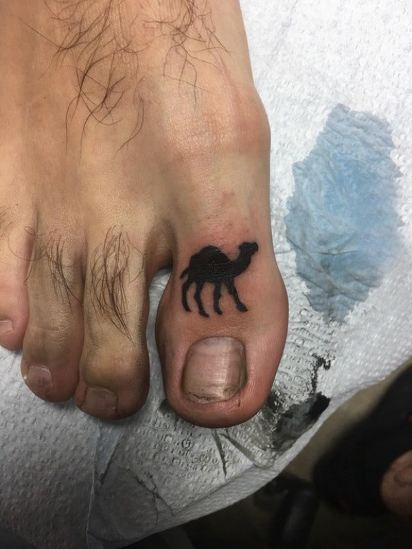 男生脚趾上黑色小动物轮廓骆驼纹身图片