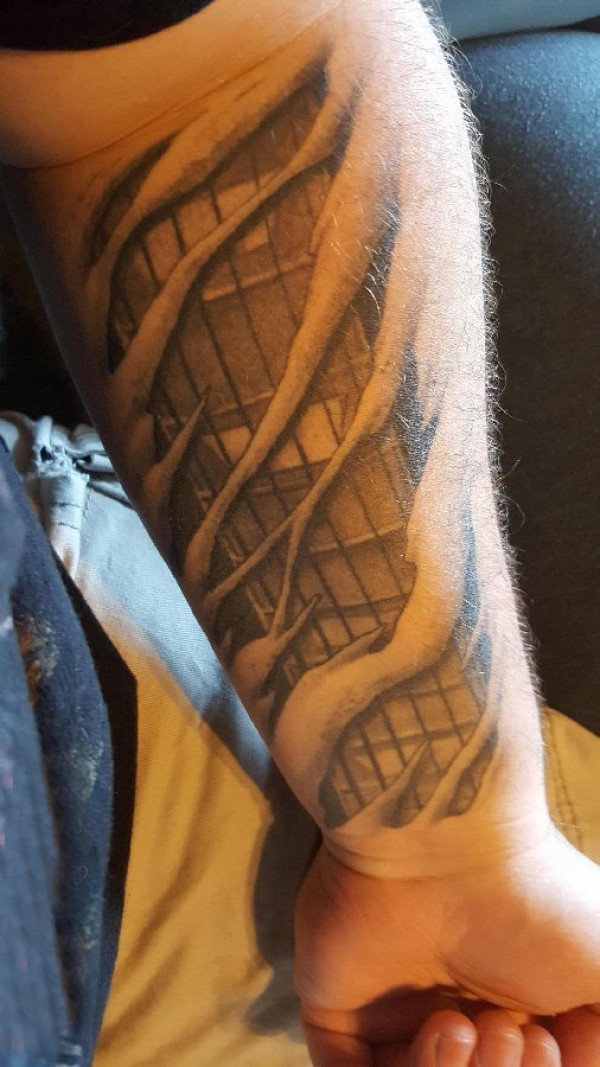男生手臂上黑灰素描创意裂痕霸气纹身图片