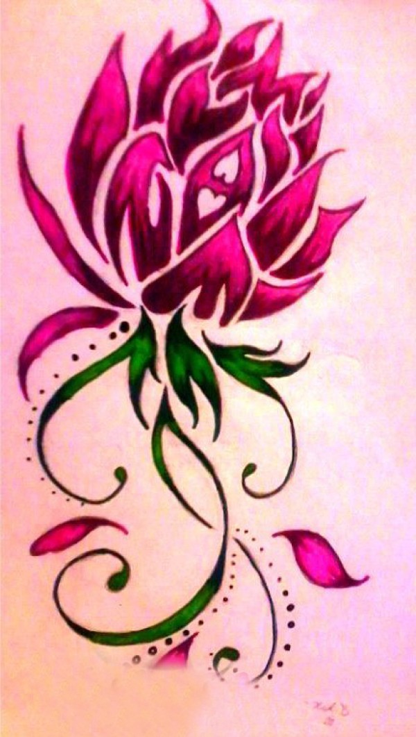 漂亮的彩绘简单线条植物唯美花朵纹身手稿