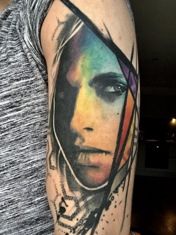女生手臂上彩绘水彩素描创意女生人物纹身图片