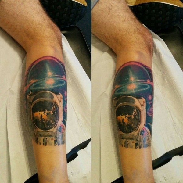 男生小腿上彩绘水彩素描创意宇宙宇航员纹身图片