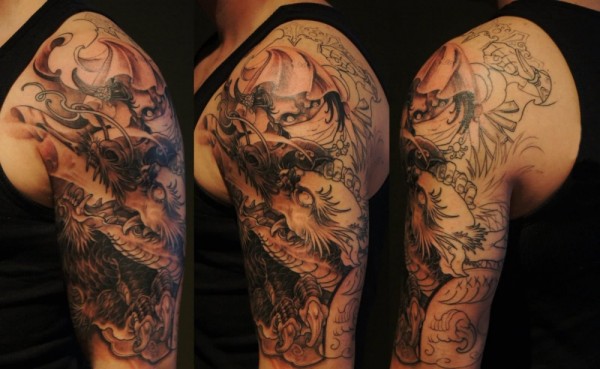 日式手彫刺青作品—半甲龙很感谢客户认可手彫刺青,手彫是日本纹身的手工雕刻技术,时间可以追溯到日本17世纪的江户时代。19世纪,手彫技术被日本黑帮挪用,被用作入会仪式,象征着从此就是江湖中人。在日式传统