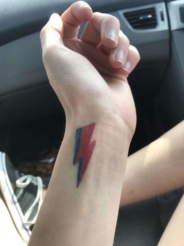 男生手腕上红黑素描创意文艺闪电纹身图片