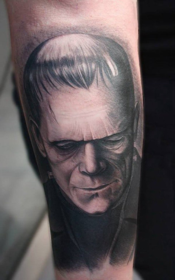 男生手臂上黑灰素描点刺技巧创意恐怖男生人物纹身图片