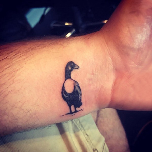 男生手腕上黑色点刺简单线条动物鸭子纹身图片