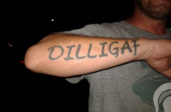 中国有嘻哈TT手臂上花体英文纹身图片