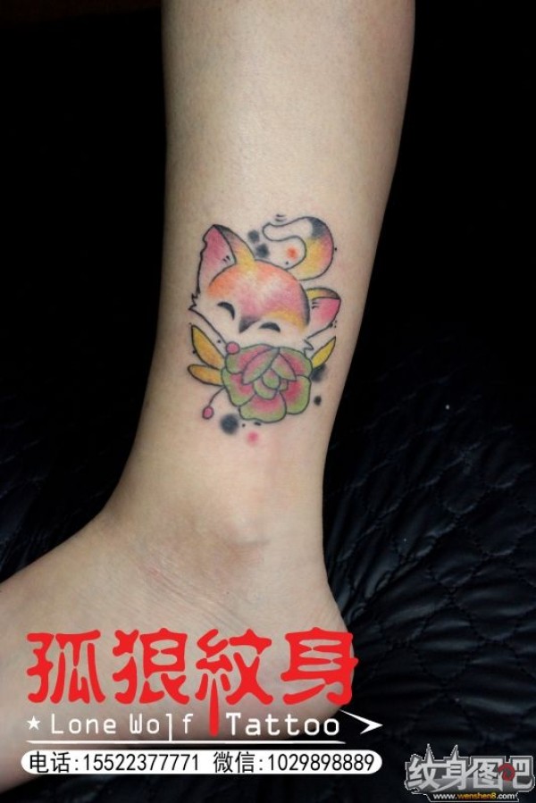宝坻纹身 脚踝小狐狸纹身 孤狼纹身工作室作品 天津