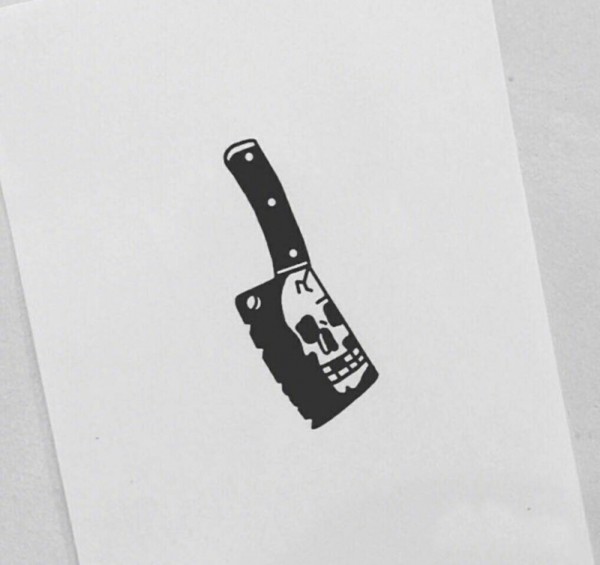 黑灰素描创意精致霸气刀锋骷髅纹身手稿
