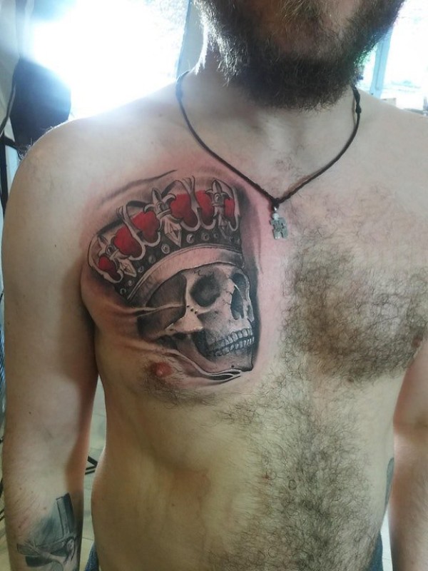 男生胸口上彩绘水彩素描创意骷髅纹身图片