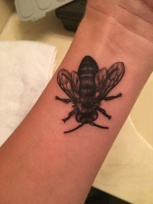 男生手腕上黑色点刺简单线条小动物写实纹身图片