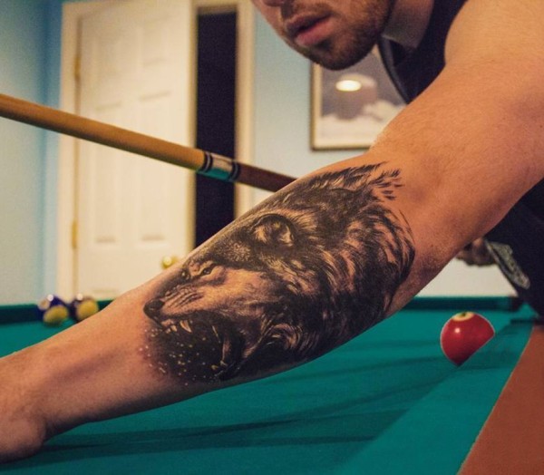 男生手臂上黑色点刺抽象线条小动物凶猛的狼纹身图片