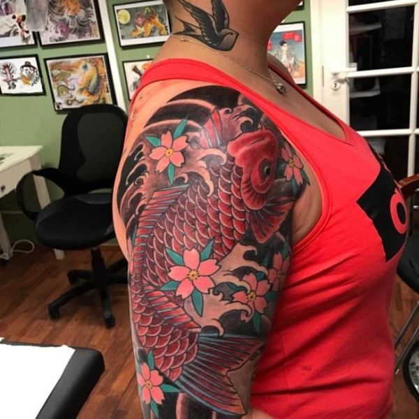 多款霸气精致的创意日本经典元素锦鲤纹身图案