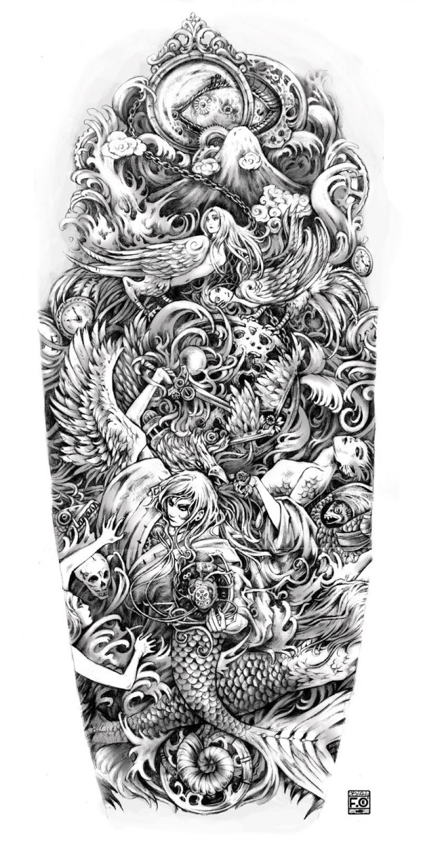 双鱼座纹身手稿_45张十二星座之双鱼手稿纹身图案