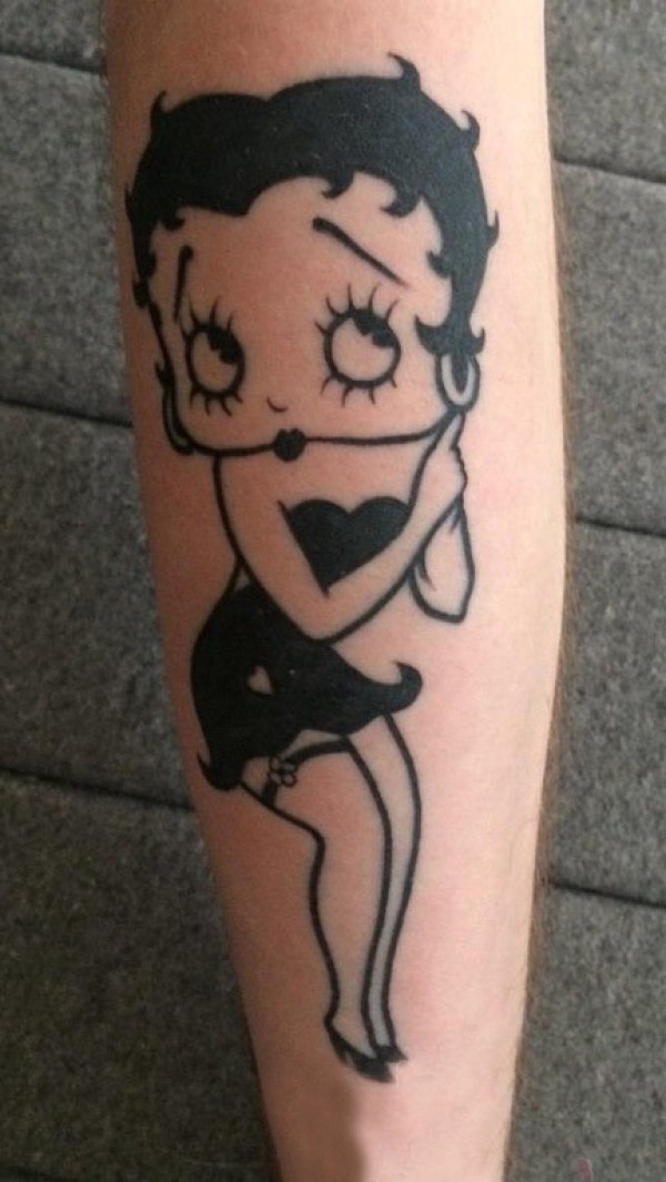 复古卡通红唇美女手臂纹身_卡通纹身图案大全_纹身图吧
