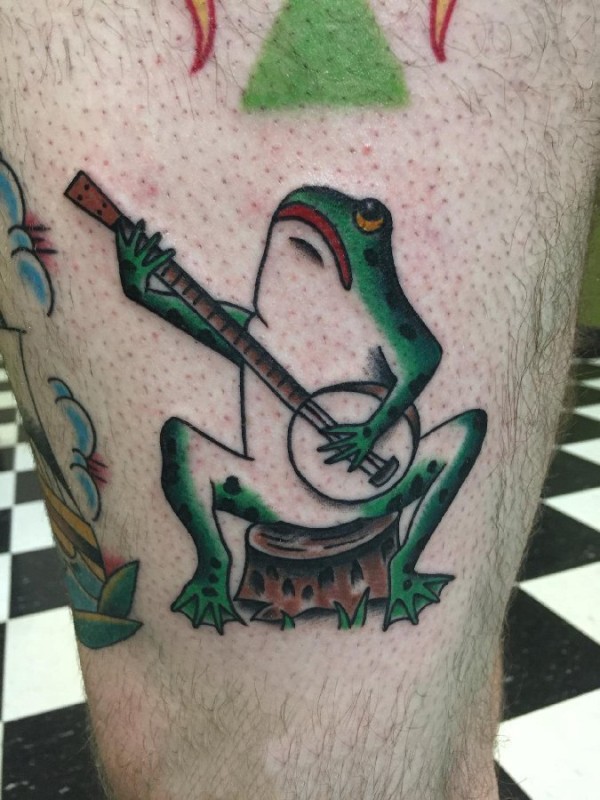 男生大腿上彩绘渐变几何简单线条小动物青蛙纹身图片
