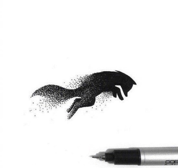 创意的黑色点刺抽象线条小动物轮廓狐狸纹身手稿