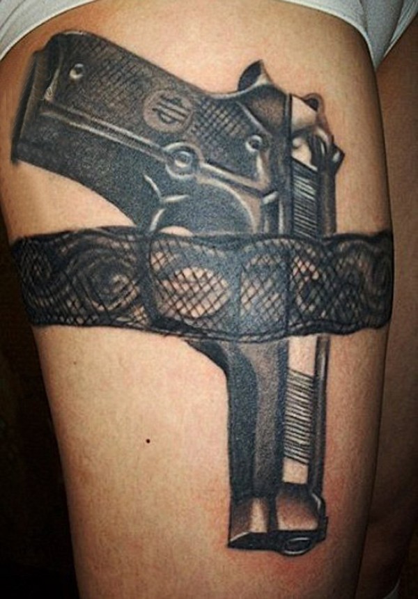 乌亮的黑色点刺几何线条创意枪纹身图案