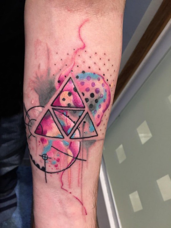 男生手臂上彩绘渐变几何元素线条三角形纹身图片
