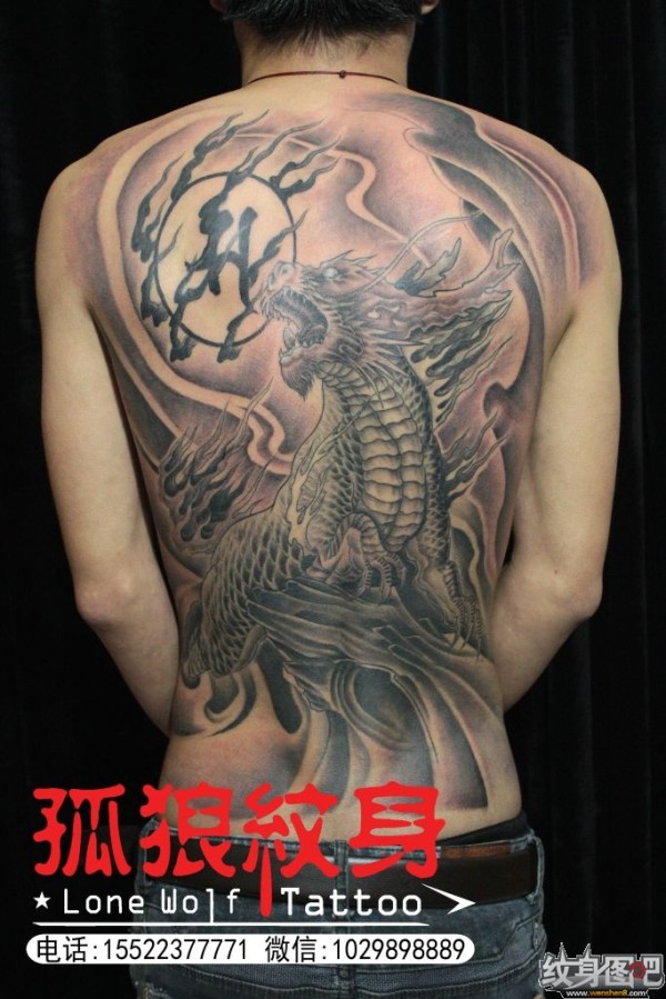 宝坻纹身 后背麒麟纹身 孤狼纹身作品 天津