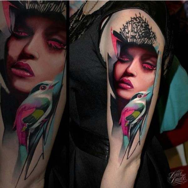 女生手臂上彩绘水彩素描创意女生人物精美纹身图片