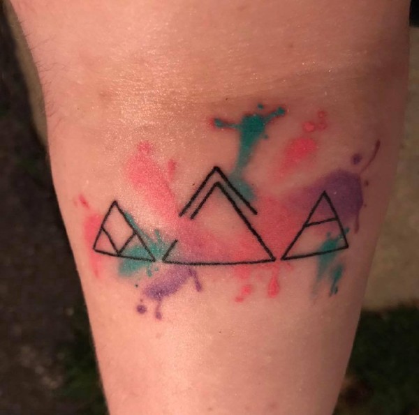男生手臂上彩绘泼墨几何线条三角形纹身图片