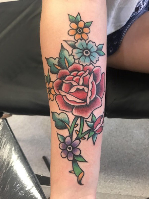 欧美玫瑰纹身 男生手臂上花朵纹身图片