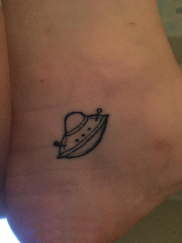 女生脚踝上黑色几何线条创意飞碟纹身图片