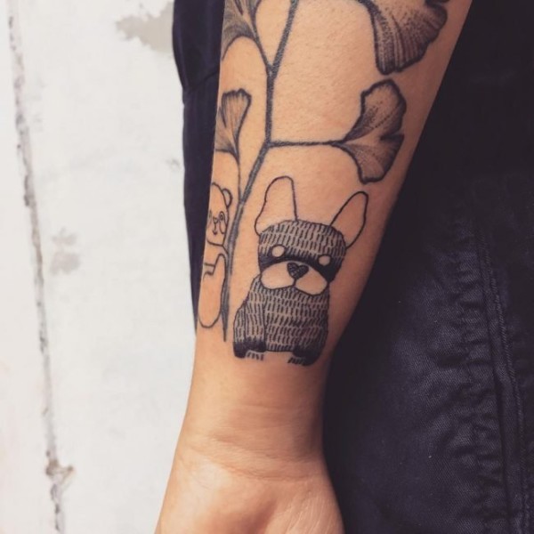 男生手臂上黑色点刺简单线条小动物狗纹身图片