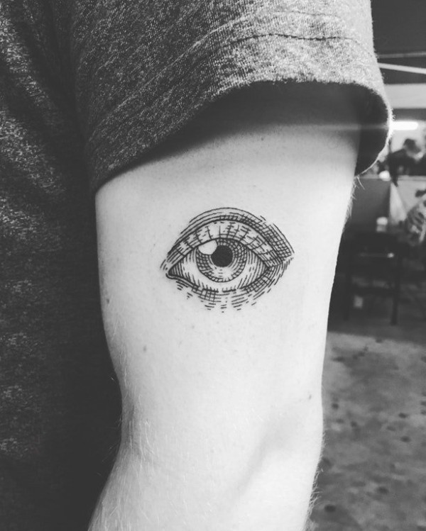 男生手臂上黑灰素描创意精美眼睛纹身图片
