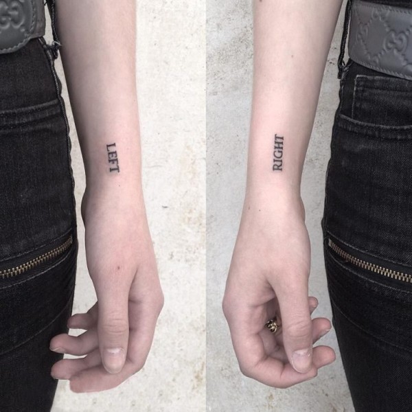闺蜜手腕上黑色简单线条有意义的英文单词纹身图片